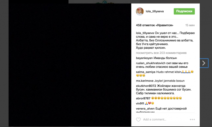 Дочь президента Узбекистана Лола Каримова-Тилляева рассказала в Instagram о смерти отца, передает Tengrinews.kz