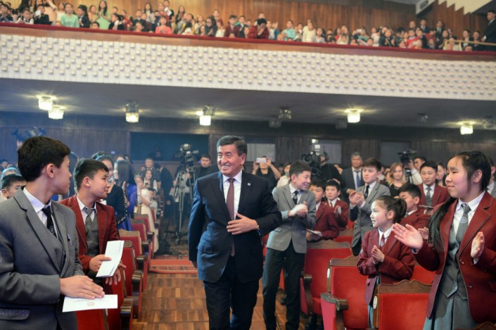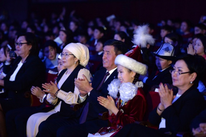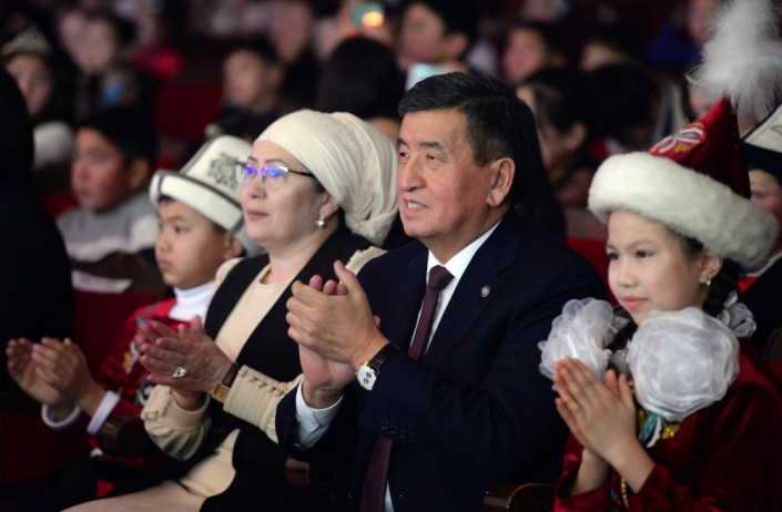 Президент Кыргызстана Сооронбай Жээнбеков и его жена Айгуль приняли участие в новогоднем представлении для детей, которое состоялось 28 декабря в Бишкеке. Об этом сообщает пресс-служба главы государства.