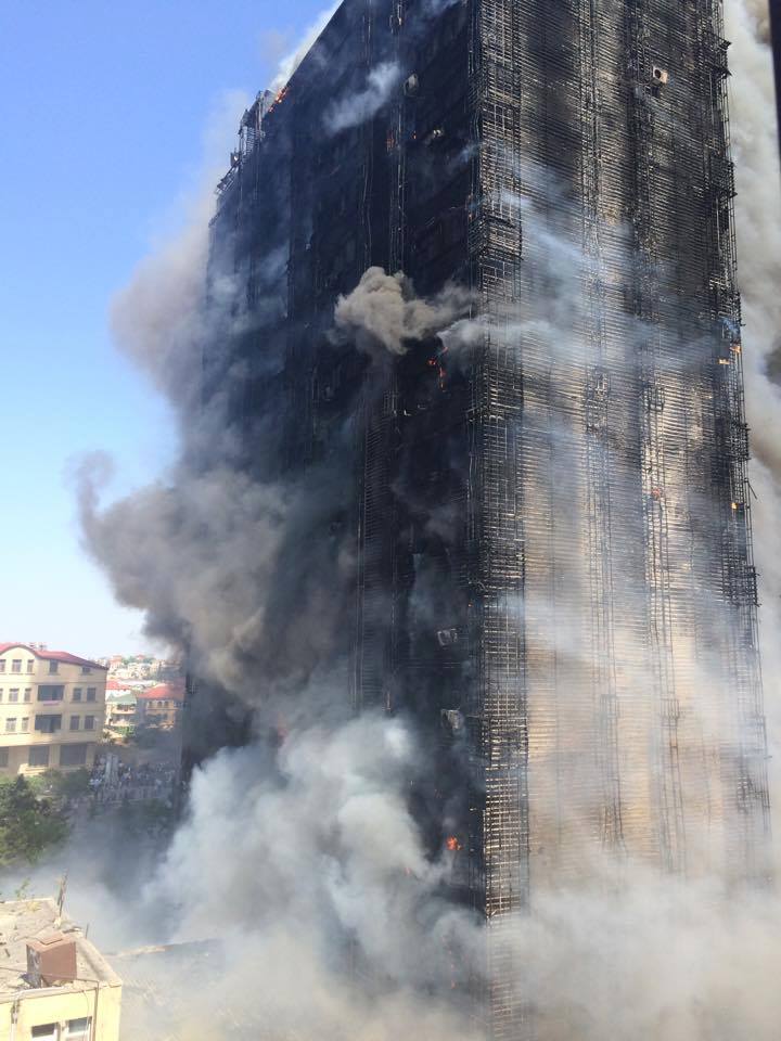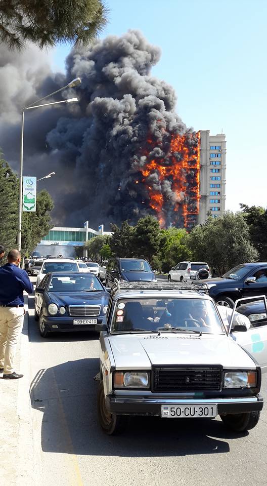 Из-за пластиковой облицовки здания огонь очень быстро распространился на все этажи. За короткое время 16-этажное здание на проспекте Азадлыг сгорело практически полностью. Пожар полностью парализовал движение на проспекте. На верхних этажах здания огонь тушили с помощью вертолета. Ликвидация пожара заняла около четырех часов.