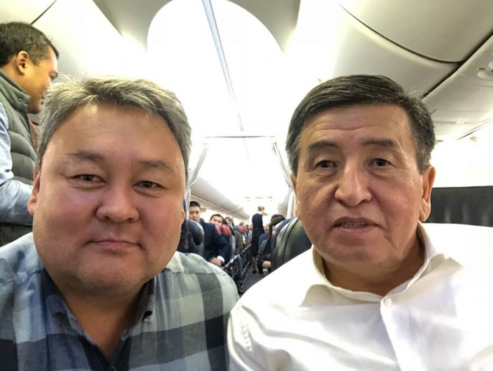 Политолог Темирлан Сарлыкбек уулу сделал селфи с президентом на борту самолета и отметил, что тот удивил всех своей простотой. "Он рассказывал про эпос "Манас", исторических героев и события, а также сообщил о начале нового большого проекта", - написал политолог в своем Facebook.