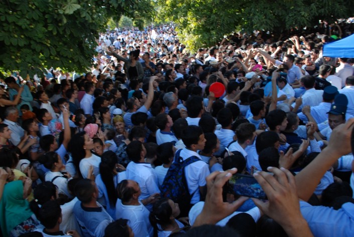 "Посмотреть, как десятки поваров в белоснежных робах колдуют над огромным казаном, можно было на расстоянии от 130 до 200 метров за ограждением. Но и тут было не протолкнуться. Ближе к полудню людей стало настолько много, что стражи порядка едва сдерживали их. Разочарованные тем, что не могут попасть за ограждения, гости ходили по кругу вокруг сквера Амира Темура. Организаторы явно не ожидали такого наплыва людей", - пишет портал.