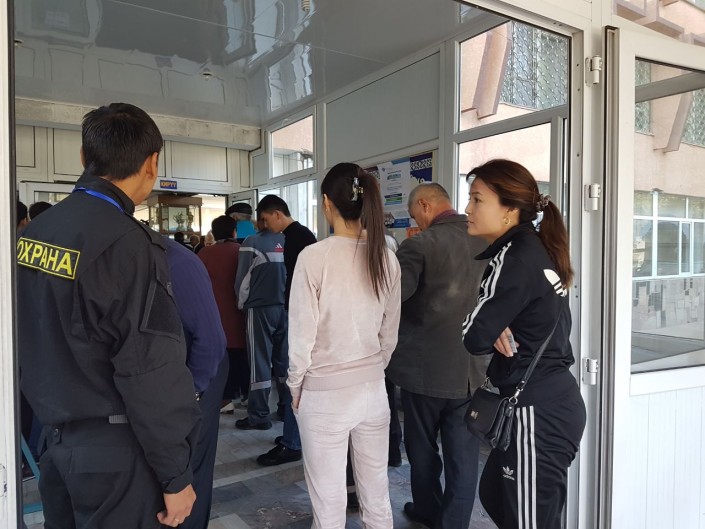 Очередь у входа в избирательный участок. Фото Tengrinews.kz