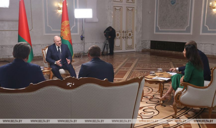 Полного интервью пока нет, журналисты цитируют фрагменты ответов белорусского лидера.