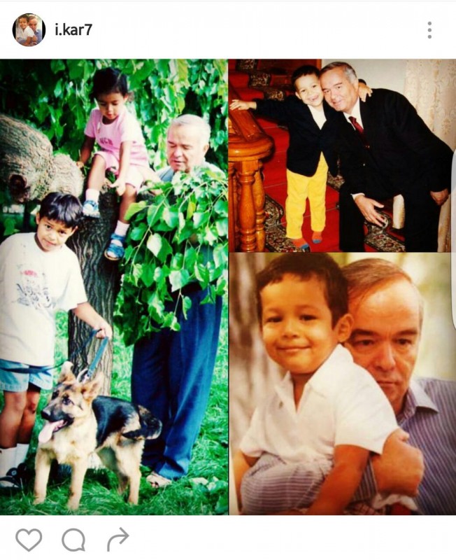 Он разместил фотоколлаж с дедушкой Исламом Каримовым. Сегодня в Самарканде состоялись похороны Ислама Каримова. По данным СМИ, старшей дочери президента Узбекистана на них не было.
