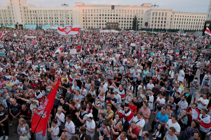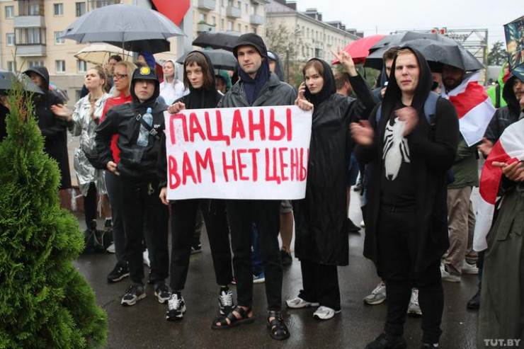 Около сотни человек собрались у входа в главный корпус Белорусского госуниверситета в Минске. Пошел сильный дождь, и собравшиеся спустились в подземный переход. Сотрудники и студенты подписывают петицию, среди требований: отставка Александра Лукашенко и главы ЦИК Лидии Ермошиной, проведение новых выборов, а также прекращение насилия и привлечение к ответственности виновных в пытках и издевательствах, освобождение политических заключенных.