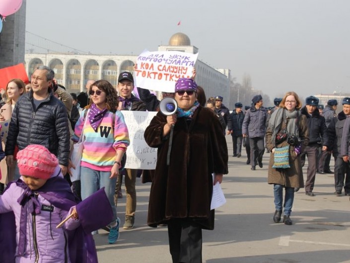 Марш, приуроченный к 8 Марта, проходит в Бишкеке уже четвертый год. Организаторы акции выступают против усиления патриархата, насилия в отношении женщин и девочек, "келинизации".