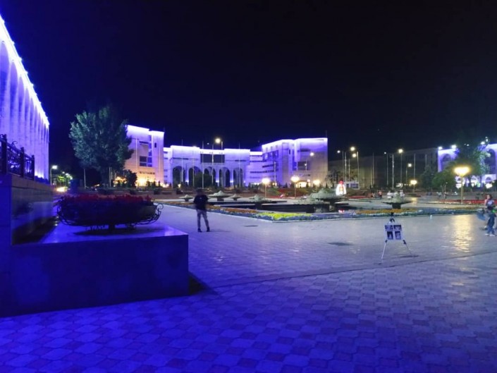 На странице мэрии в Facebook появилась заметка о ночном поливе цветов на центральной площади Бишкека.