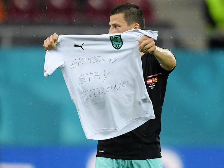 Лайнер посвятил гол датскому полузащитнику Кристиану Эриксену, пережившему остановку сердца прямо во время матча Евро. После забитого мяча игрок продемонстрировал заранее заготовленную футболку с надписью "Эриксен, оставайся сильным".