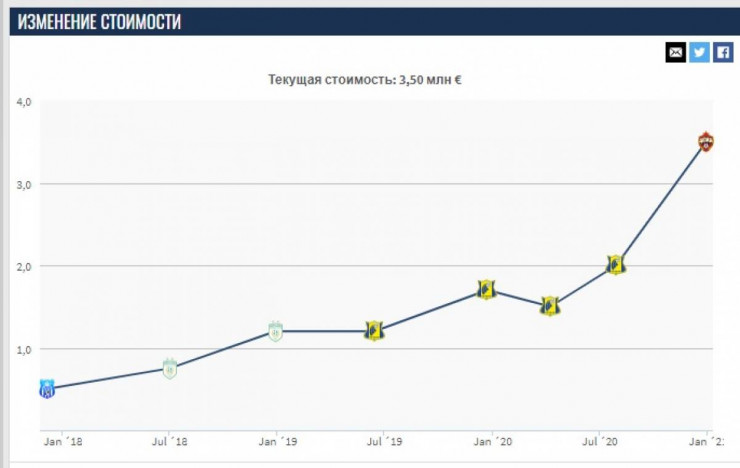 6. Бруно Фукс (ЦСКА) +150% (с 1,8 млн до 4,5 млн)