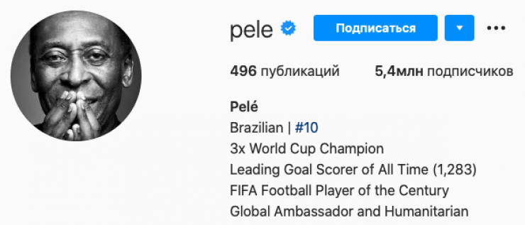 В Instagram-аккаунте трехкратного чемпиона мира по футболу в составе сборной Бразилии Пеле изменилось количество забитых бразильцем мячей за карьеру.