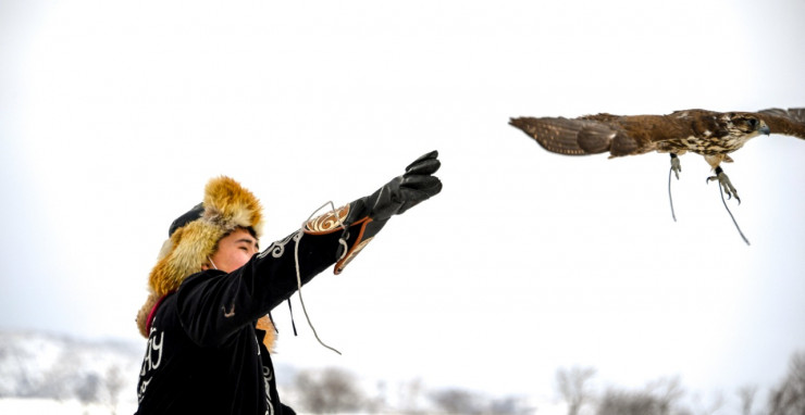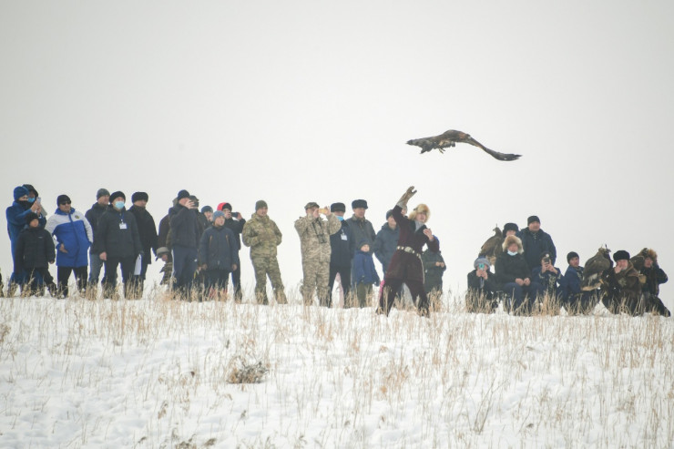 "Наш беркут Нарын, которого назвали в честь песчаной пустыни. Нарын семикратный чемпион Казахстана, чемпион всемирного фестиваля. Его тренируют беркутчи - отец и сын Абдулкарим и Арман Кошкаровы", - поделился он, отметив, что тазы-победителя тоже тренировал Арман Кошкаров.