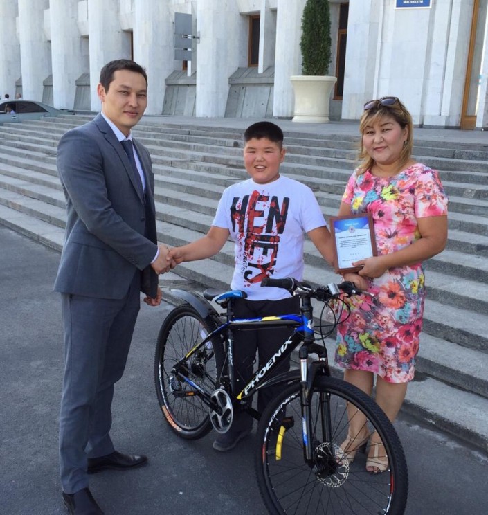 "Я выезжал в волонтерский штаб каждый день и видел там Диаса. Он самоотверженно трудился, находился там с утра и до вечера. Он просто умничка и молодец. Диасу очень понравился своевременный подарок. Оказывается, его велосипед недавно сломался. И конечно, большое спасибо его родителям", - рассказал руководитель управления внутренней политики города Санжар Бокаев, который и вручил подарки юному волонтеру.