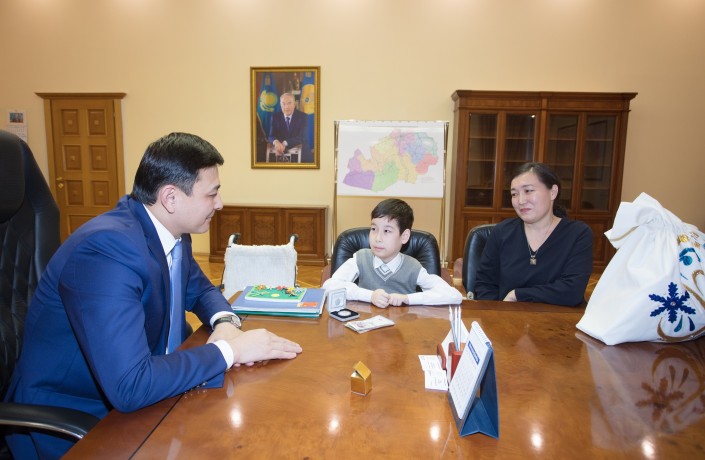 Глава Западно-Казахстанской области Алтай Кульгинов исполнил просьбу 8-летнего Чингиса Сапиева, который в письме Деду Морозу попросил показать ему кабинет акима, сообщает корреспондент Tengrinews.kz.