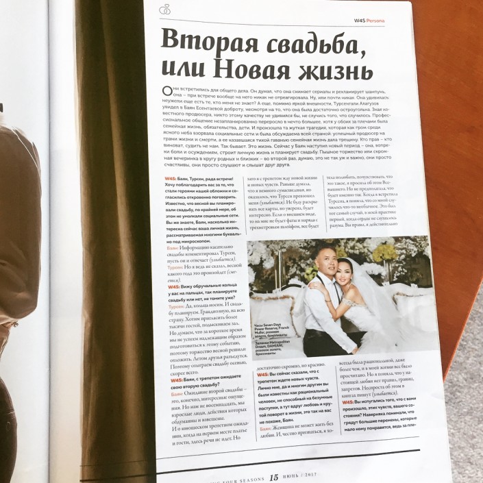 Алматинский бизнесмен Турсенгали Алагузов и его возлюбленная Баян Есентаева рассказали о своей предстоящей свадьбе в интервью журналу "Wedding Four Seasons". Обложку и первую страницу интервью опубликовала в своем аккаунте в Instagram Айдана Аскарова.