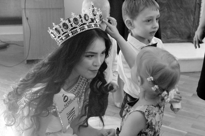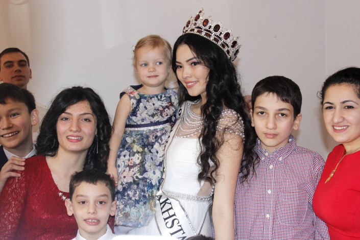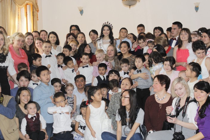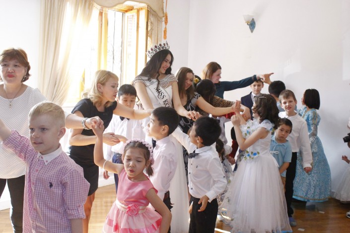 В гости к детям пришла обладательница титула "Мисс Казахстан-2015" Алия Мергембаева из Актау. Девушка поделилась, что очень любит детей и готова проводить с ними круглые сутки.