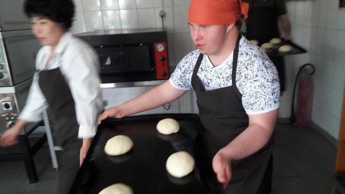 Один из первых учеников пекарного дела - 21-летний Николай Синенко из Алматы. Николай с нетерпением ждет каждого занятия. "Он выполняет свою работу на ура, его даже не нужно о чем-то просить. После занятий, после работы все за собой убирает, моет. Он очень добросовестный работник - без перекуров и Facebook. Я разговаривала с Николаем, он хочет семью, он хочет работать. У него такие же потребности, как и у нас с вами. И он не понимает, почему у него этого нет. Он не считает себя инвалидом или еще кем-то, он соотносит себя с обычным человеком", - поделились организаторы курсов.