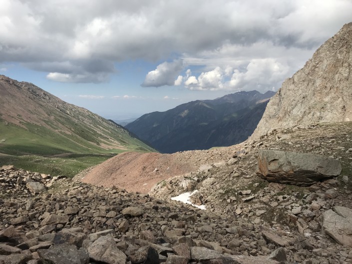 6 июля в 17:30 группа начала пешую часть маршрута с Талгарского перевала (3 200 метров). С перевала путешественникам открывается невероятный вид на Заилийский Алатау. С этой высоты виден и сам город Алматы.