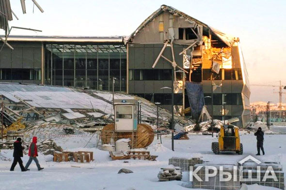 Правда, до того на территории выставки случился инцидент - в сильный мороз обрушилась массивная стальная конструкция.