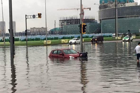 Тем временем город, готовящийся к EXPO, внезапно оказывается под водой - Астану затапливают дожди.