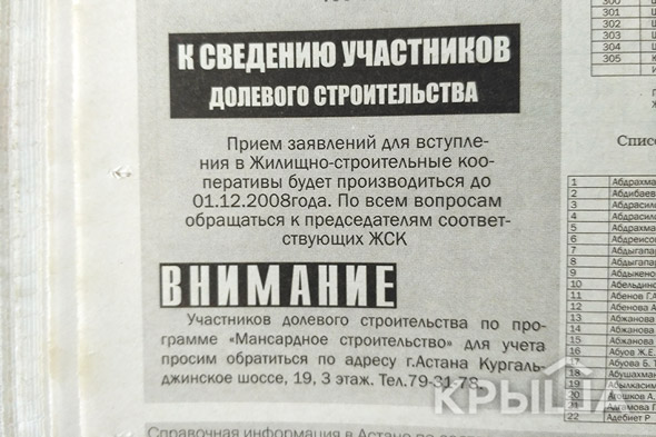Достраивать объекты обанкротившихся стройкомпаний вверено ТОО "АККБ "Жана Курылыс", но дольщикам гарантирована только одна квартира, даже если было приобретено несколько.