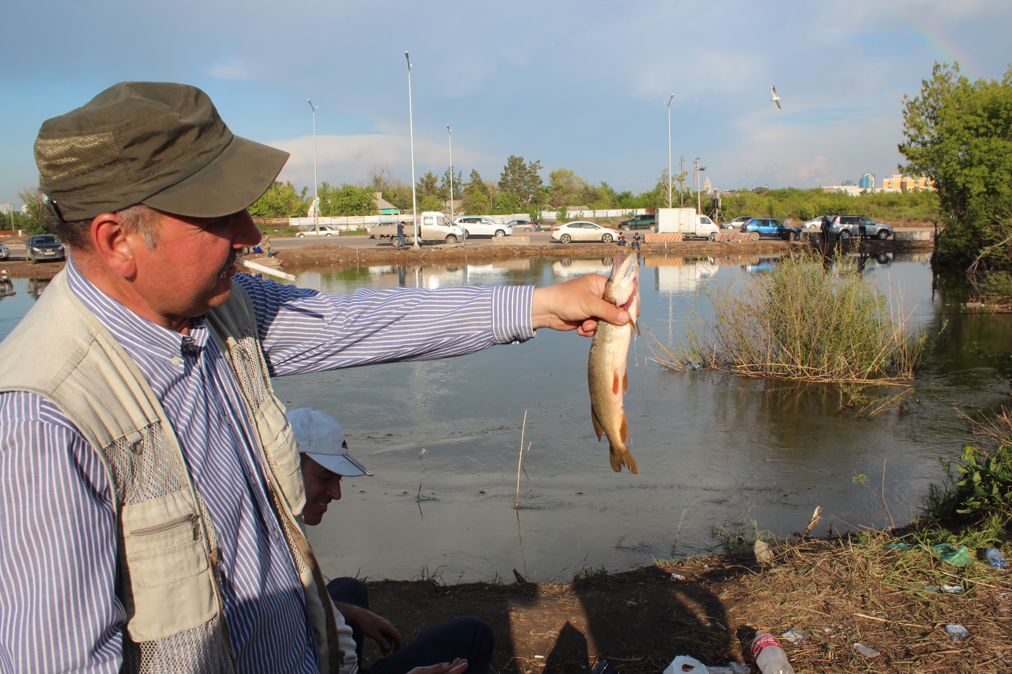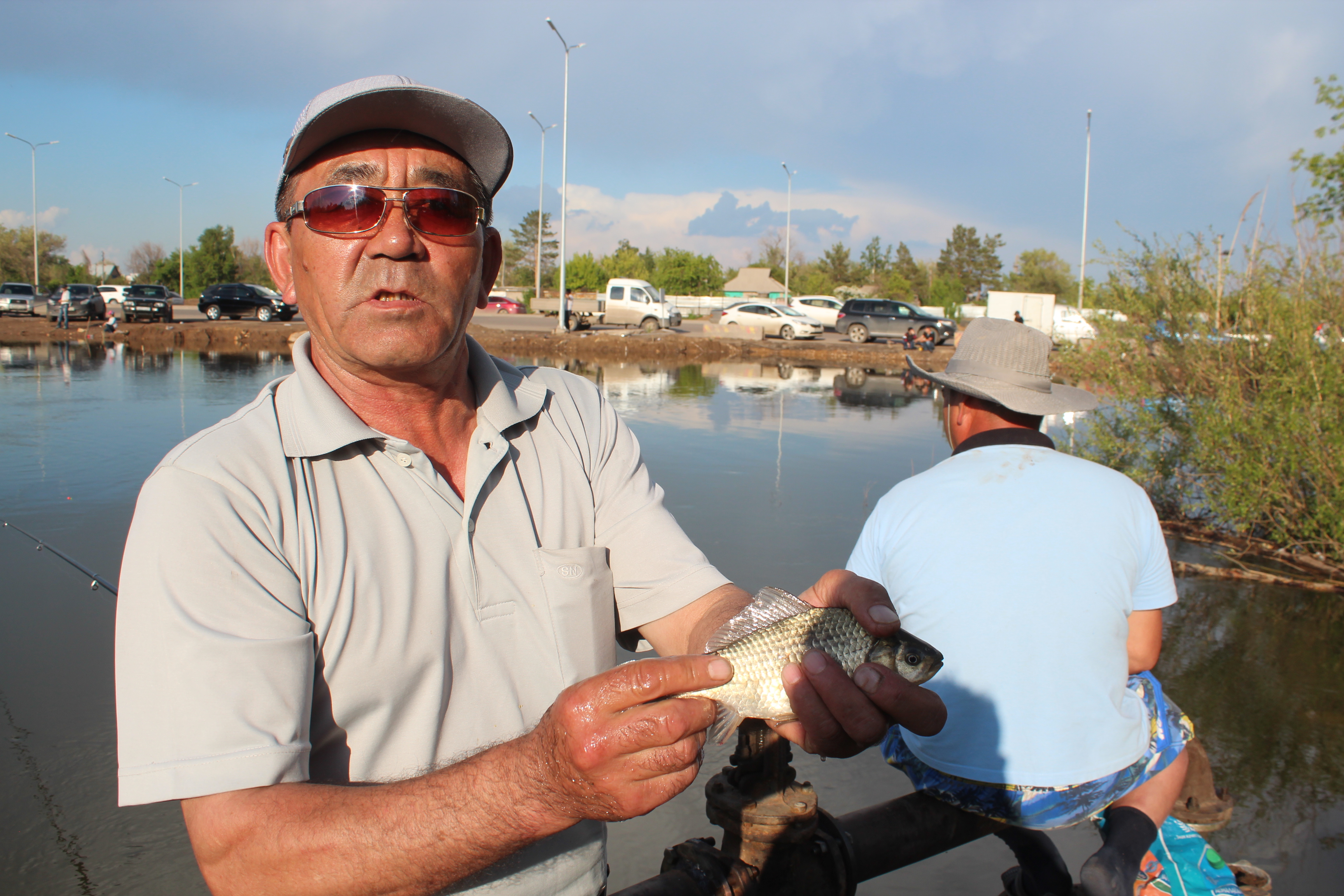 "Нормальная рыба, не "башановская" (Башан - накопитель сточных вод в Астане. - Прим. автора), жарили. Это нуринская рыба, из Нуры", - говорит пенсионер Болат Ахметжанов. Об этом месте он узнал случайно. "16-го числа я с Ильинки ехал, смотрю: здесь толпа с этой и с этой стороны. И вот уже я в третий или четвертый раз здесь. Людей много в субботу и воскресенье особенно. Люди останавливаются, смотрят, что тут ловят, и приходят, азартные, даже те приходят, которые вообще рыбалкой не занимаются, не любители", - рассказывает мужчина.