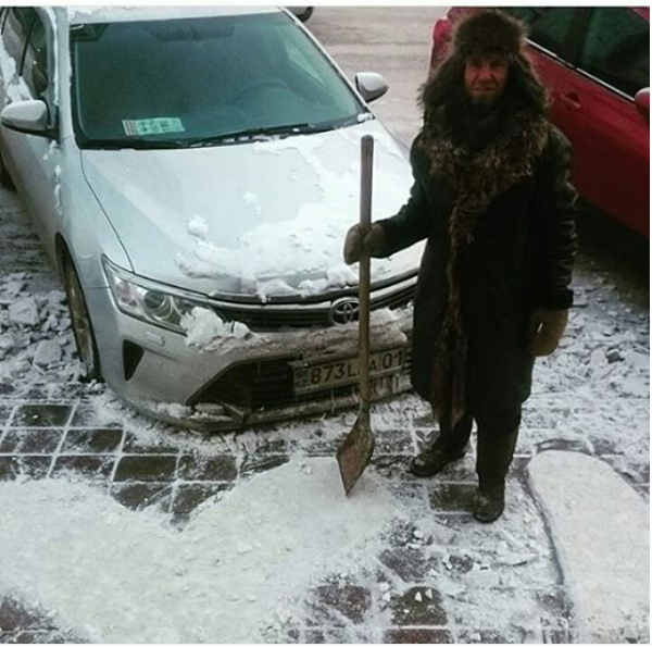 Автор знаменитых сердечек на асфальте дядя Саша уехал из Астаны Фото Facebook/Nurserik Zholbarys
