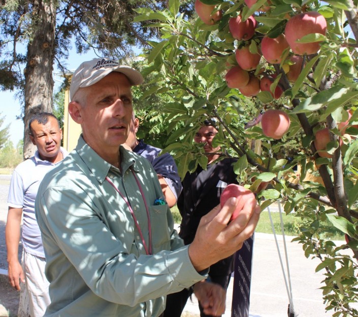 Жұмысыма келсек, мен бағбан болып жұмыс істеймін және жергілікті бағбандарға тәжірибемді беремін. Алматының белгісі саналатын апорт сұрыпын жандандыру туралы маған сұрақтар жиі қойылады. Қазіргі уақытта ол апортты есік алдына немесе шағын бау-бақшаның ішінде өсіруге болады. Ал оны тонналап және сауда үшін өсіру өте қиын. Себебі оған ерекше күтім қажет және қазіргі кезде ол алма түрі бізге белгісіз жаңа ауруға төзімсіз. Оған қоса апорт сұрпын ұзақ уақытқа сақтау мүмкін емес, ол тез бұзылады. Бүгінгі уақытта Алматы облысында бау-бақшалар жақсы дамып келеді. 19 жыл бұрын дәл бүгінгідей болған жоқ.