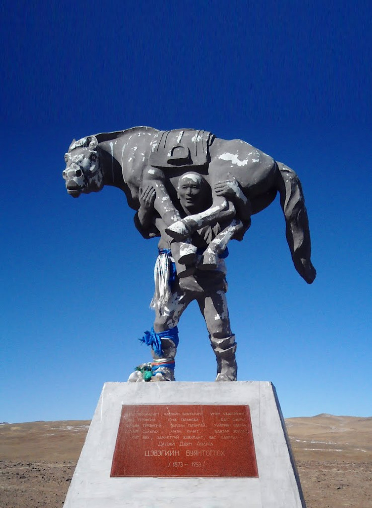 Алайда, моңғол баспасөзіндегі мәліметтер мен ескерткіштің тақтайшасындағы жазбаға сенсек, бұл ескерткіш Моңғолия Сүүхбаатар аймағы Мөнххаан ауданында 2007 жылы орналастырылған. Цэвэгийн Буянтогтох моңғол ұлттық күресінің жеңімпазы болған, осы батырға арнап қойылған ескерткіш. Сүхбаатар аймағы Қытайға жақын орналасқан. Тываға еш қатысы жоқ. Моңғол сайттарында моңғол тұлғасы ретінде көрсетілген.