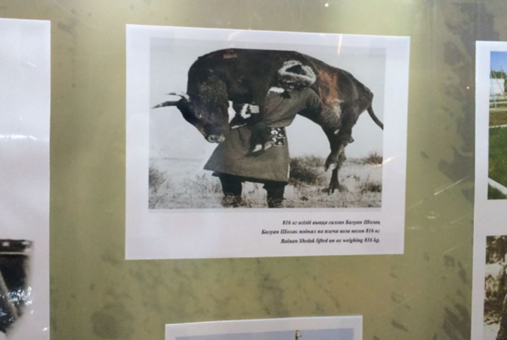 Байқасаңыз, бұл заманауи фотосурет, ал суреттегі бұқаның салмағы шамамен 800 келіге жетпейді. Балуан Шолақ ХІХ ғасырда өмір сүргенін де айта кетейік. Біз Балуан Шолақтың күш-қуаты туралы әлдеқандай тұжырым жасаудан аулақпыз. Оның үстіне Балуан Шолақтың "Кешегі сентябрьдің базарында Көтердім елу бір пұт кірдің тасын" деп келетін өлең жолдарынан оның шын мәнінде алып күш иесі болғанын байқаймыз.