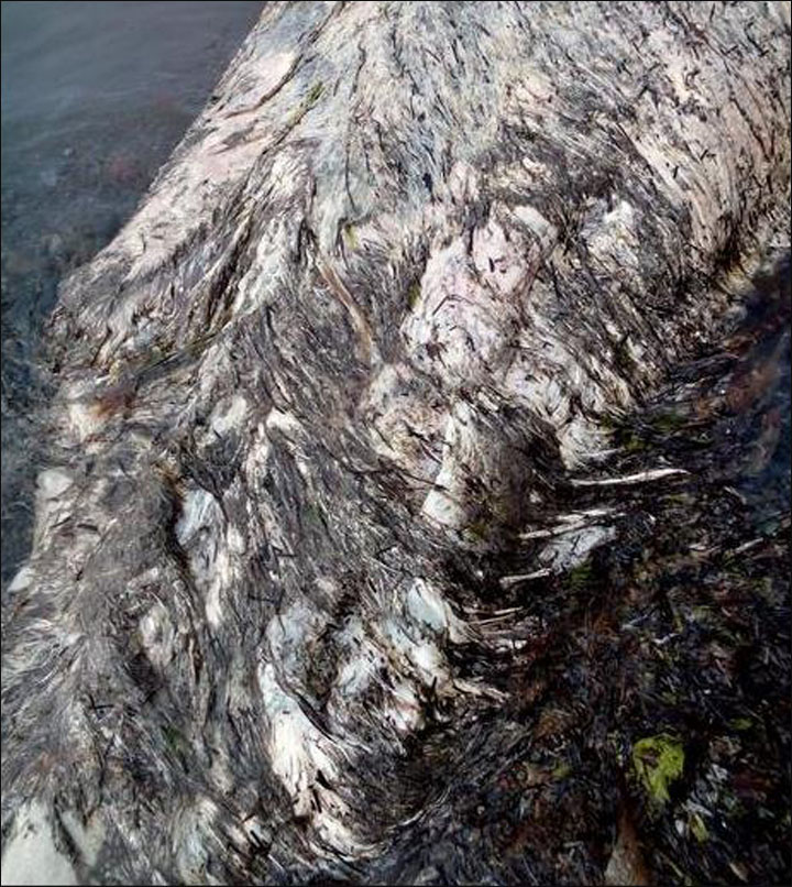 Останки неизвестного морского животного с шерстью на хвосте выбросило на берег острова Сахалин в районе города Шахтерск. Об этом сообщает местное издание ИА SakhalinMedia