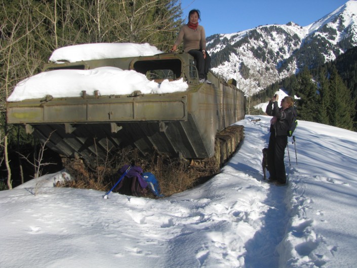Блогеры нашли в горах Алматы заброшенную военную технику БТР в ущелье Ким Асар. Фото©Ольга Гумирова.