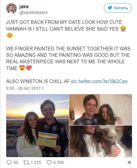 В результате Ханна согласилась на предложение Джейка, и они провели вечер в обществе друг друга и ее пса по кличке Уинстон.