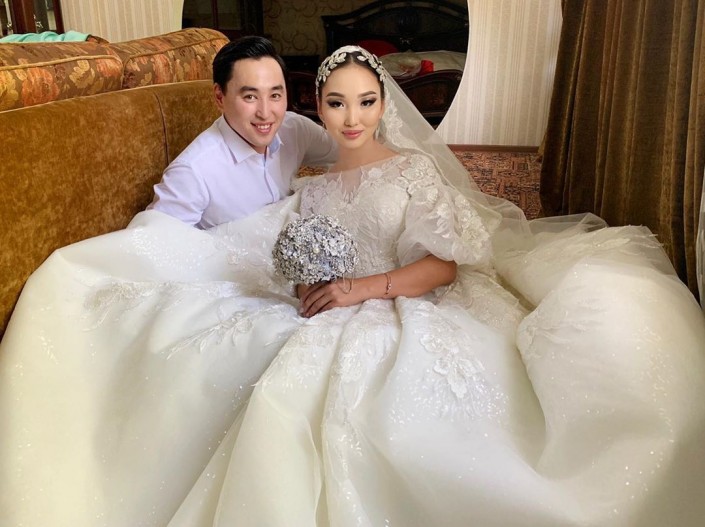 Мейрамханаға ол қалыңдық фатасына гелий шарларын іліп шыққанын айтты. Той Шымкент қаласында кеше, 30 шілдеде өткен. Қалыңдық тойда екі көйлек ауыстырған. Той барысында қалыңдықтың құрбылары бірдей түсті көйлек киген.