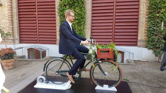 Мужчина на велосипеде вырабатывает энергию для охлаждения пива. Фото ©Tengrinews.kz