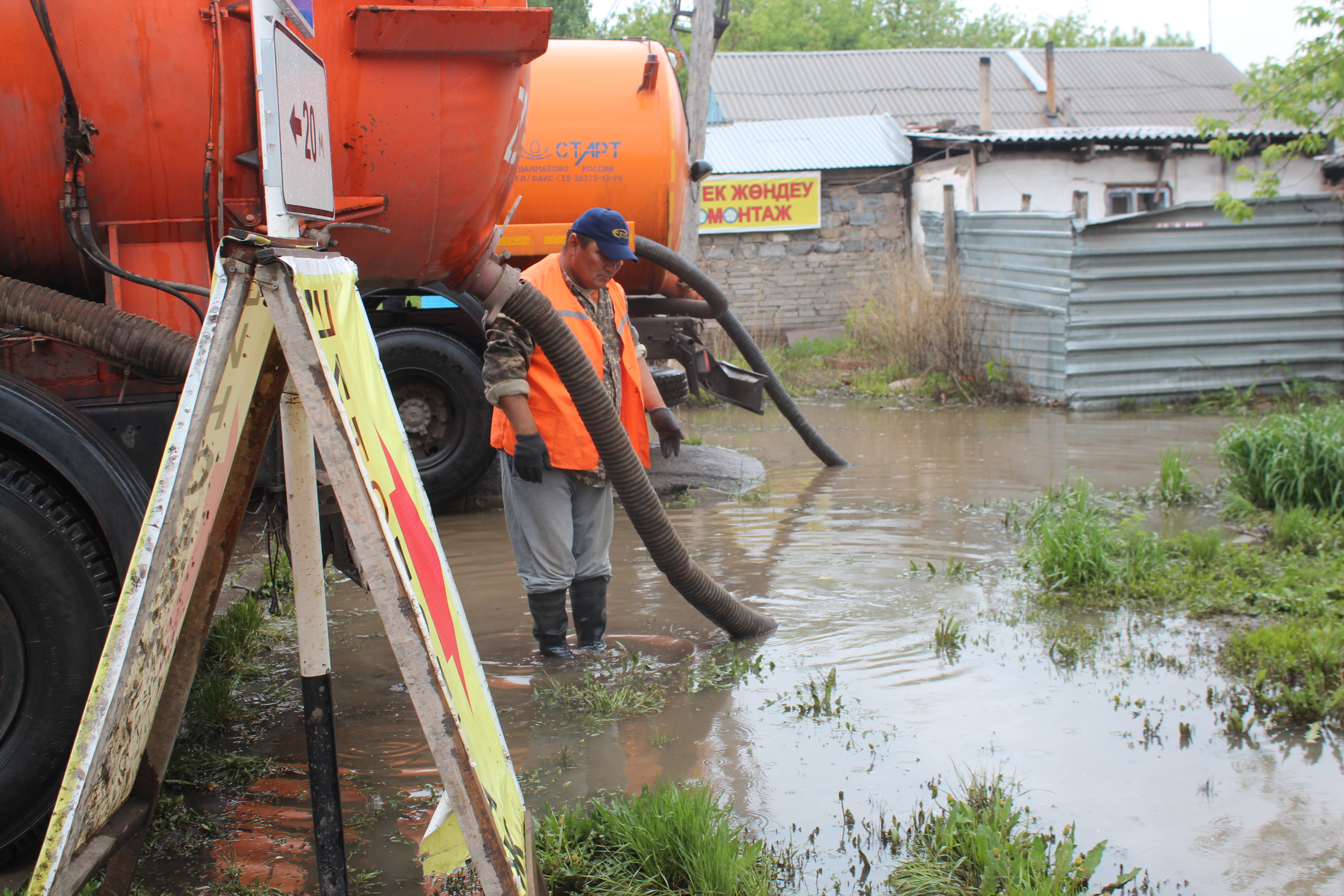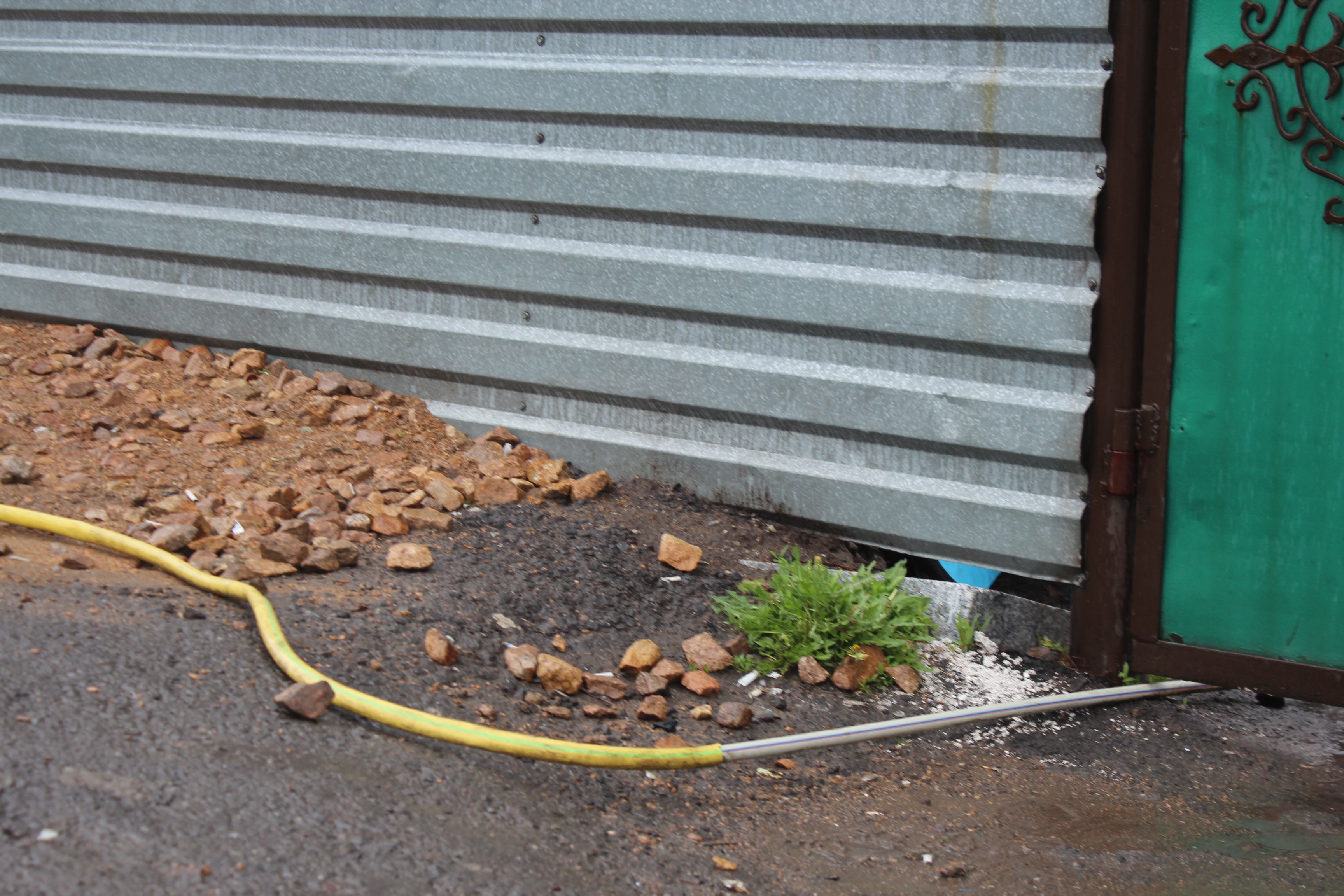 Почти в каждом доме стоят насосы по откачке воды. Они самостоятельно выводят шланг, и вода стекается в арык. По мнению жильцов, после дождей вода с рынка "Артем" стекается в этом районе из-за переполненной ливневой канализации.