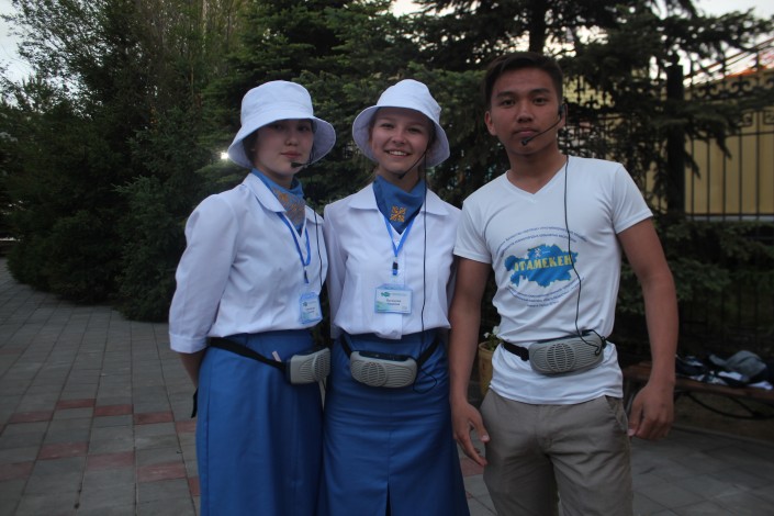 В честь открытия отреставрированного комплекса столичное Управление культуры архивов и документации организовало для журналистов пресс-тур. Перед входом в музей нас встретили школьники. Каждый год учащиеся в период летних каникул работают в музее гидами и экскурсоводами. Наши собеседницы Надежда и Гульсезим - старшеклассницы, им по 15 и 17 лет. Отбор на гидов-экскурсоводов прошли 5 лет назад.