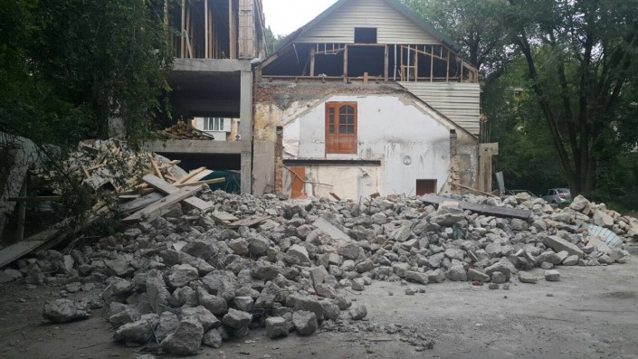 В центре Алматы после сноса здания, незаконно построенного на месте бывшего детского сада, остался неубранным строительный мусор. С начала июня на месте четырехэтажного здания во дворе жилого дома по адресу Валиханова, 137 красуются груды развалин. Об этом корреспонденту Tengrinews.kz рассказали местные жители, прислав в редакцию фото. На снимках видно, что двор завален остатками бетонных конструкций и досками.