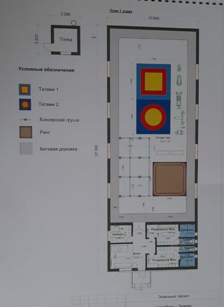Бокс залының эскиз жоспары: