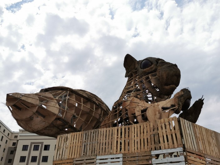 Алматинская Белка оголилась! С гигантского грызуна сняли всю солому, остался лишь каркас из железа и фанеры. Сейчас владельцы Белки собирают средства на новую одежку из пластика. Но денег катастрофически не хватает. Изначально речь шла о сумме 10 миллионов тенге, однако она может быть пересмотрена в сторону уменьшения. Об этом корреспонденту Tengrinews.kz рассказала продюсер проекта Майра Измайлова.
