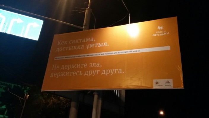 "Это добрый социальный проект, который отражается в своде простых негласных правил, призванных менять мышление людей в позитивную сторону. В современном мире есть место дружбе, улыбкам, добру и светлым чувствам. И эти установки отражаются в каждой строчке "Алматы Жеті Жарғы", которые являются скорее дружескими советами, нежели строгими правилами. Они стремятся напомнить алматинцам и гостям города об общечеловеческих ценностях, о простых принципах, которые работают везде - в больших городах и в маленьких населенных пунктах. Чтобы человек, который стоит в пробке, проходит мимо, увидел фразу и именно она запала ему в душу, мысли, стала его идеей хотя бы на короткий срок", - рассказал менеджер проекта Султанбек Аубакиров, добавив, что для воплощения идеи был выбран простой и ясный дизайн, чтобы все внимание было сосредоточено на смысле слов.