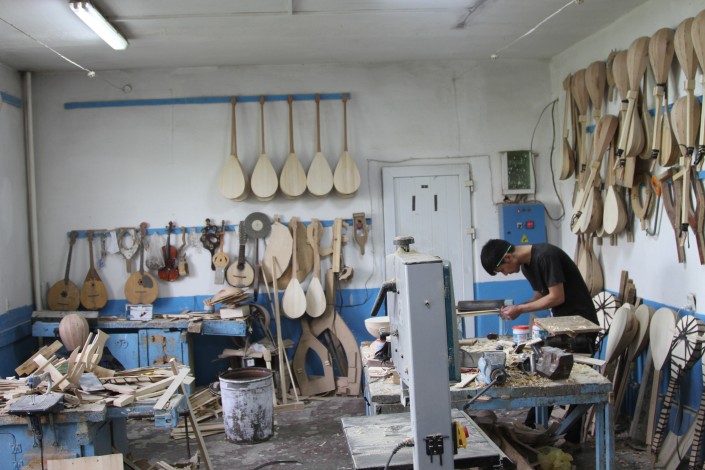 Шебер қала шетінде орналасқан цехте қызмет етеді. Цех есігін ашқан бетте көзге жасалып бітпеген аспаптар мен кесілген ағаштың иісі аңқиды. Қоңыр үнді домбыра, қазақ ерекше қадірлейтін қобыз және өзге де 50-ден астам аспап түрі жасалатын орын халқымыздың бай қолөнер сырын сақтап тұрғандай.