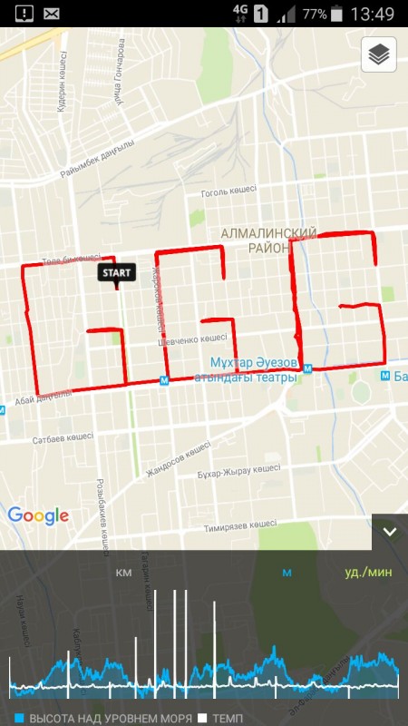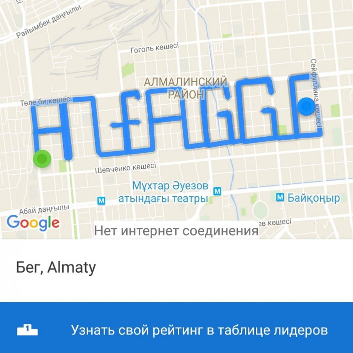 Напомним, в конце августа трое жителей Алматы пробежали полумарафон, чтобы написать на карте Алматы "Алға GGG".