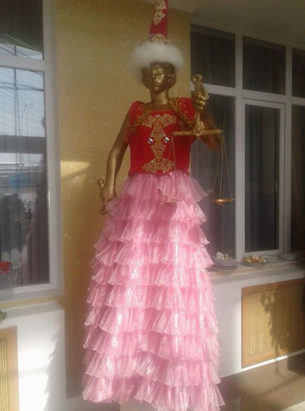 В Южно-Казахстанском областном суде подтвердили, что статуя Фемиды действительно была наряжена к празднику Наурыз. Правда, в казахском национальном платье ей дали постоять всего один день.