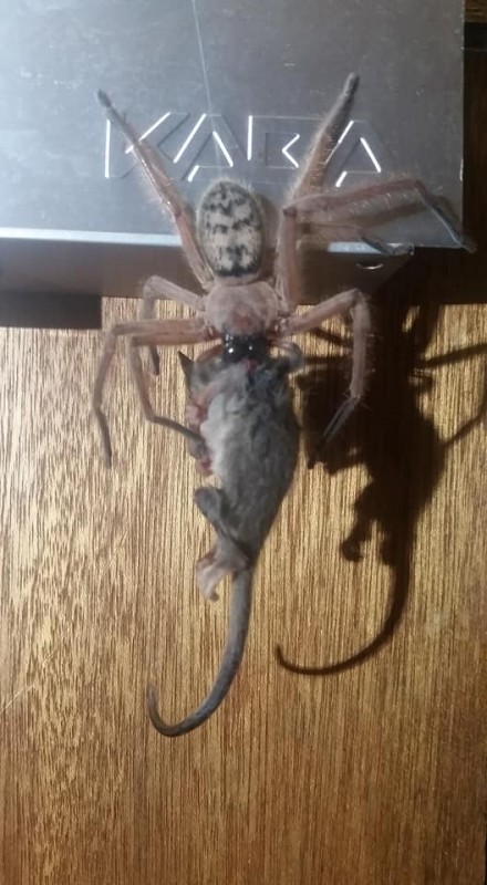 Супруги Джастин и Адам Латтон стали свидетелями жуткой картины в Национальном парке Маунт-Филд на острове Тасмания (Австралия). Семейная пара сфотографировала гигантского паука, пожиравшего карликового опоссума (млекопитающее семейства сумчатых). Редкие снимки опубликованы на странице Tasmanian Insects and Spiders в Facebook.