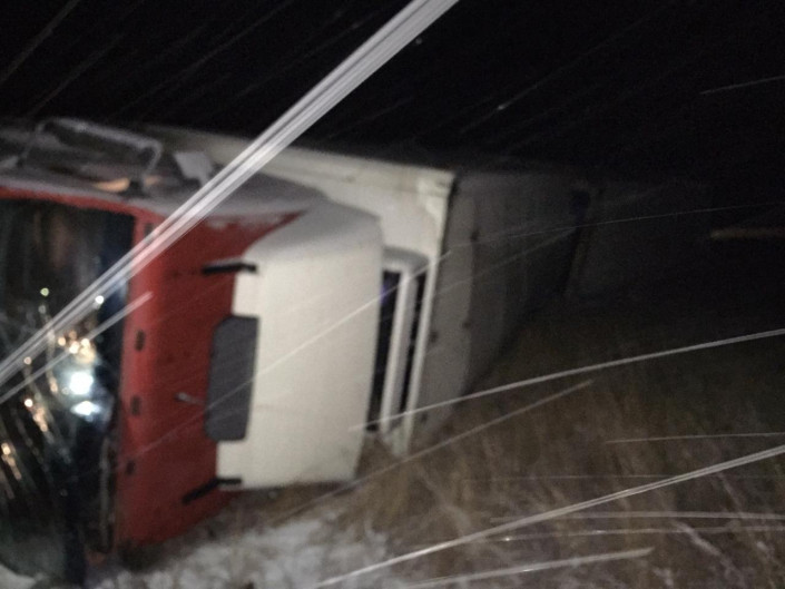 Дорожно-транспортное происшествие случилось в пять утра 6 декабря в Успенском районе Павлодарской области на 127-м километре автодороги республиканского значения Павлодар - Успенка - граница РФ. Водитель грузового автомобиля, из-за гололеда на дороге не справившись с управлением,