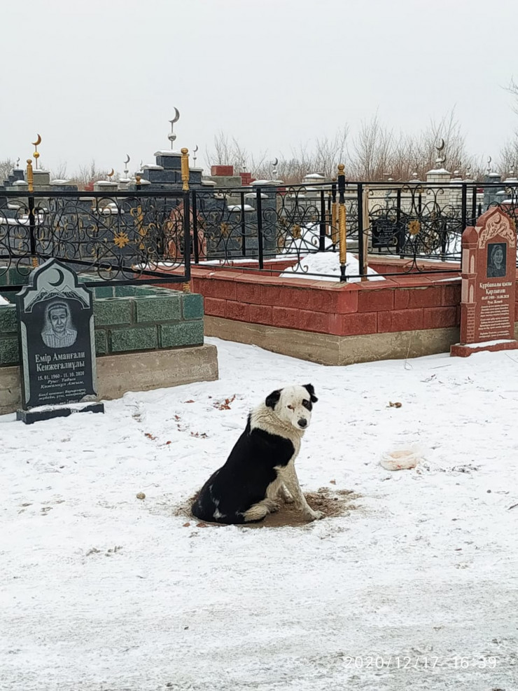 По просьбе корреспондента Tengrinews.kz они съездили вместе с питомцем на кладбище, чтобы узнать больше информации о хозяине и его питомце.