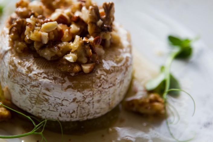 На одну порцию салата понадобится: 25 граммов руколы, 20 граммов вяленых томатов, 120 граммов яблок, приготовленных по технологии су-вид с бадьяном и палочками корицы, 15 граммов сыра пекарино с черным трюфелем, 100 миллилитров яблочного фреша, 40 граммов меда, 5 граммов корня имбиря. Рецепт таков. Рукола промывается и обсушивается. Яблоки, бадьян, палочки корицы  вакуумируются и варятся при температуре 80°C в течение 20 минут, после - остужаются в ледяной воде. В яблочный фреш добавляется корень имбиря, варится на медленном огне в течение 20-25 минут, добавляется мед и вываривается до состояния соуса, охлаждается. Выкладываются яблоки, рукола, вяленые томаты и поливаются соусом. Сверху тонкими слайсами натирается сыр пекарино.