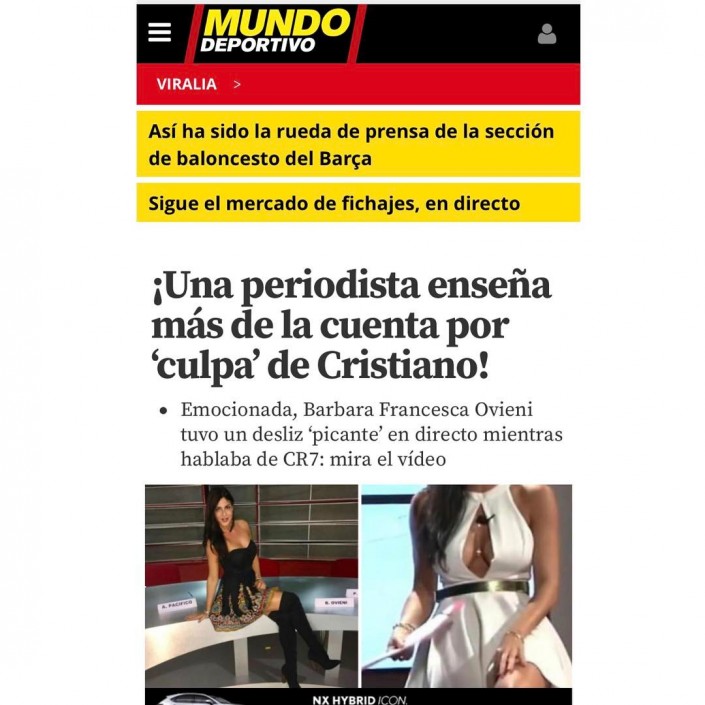 Итальянская актриса, модель и телеведущая футбольной программы Rabona на канале 65 Sport Барбара Франческа Овиени устроила случайный стриптиз в прямом эфире.