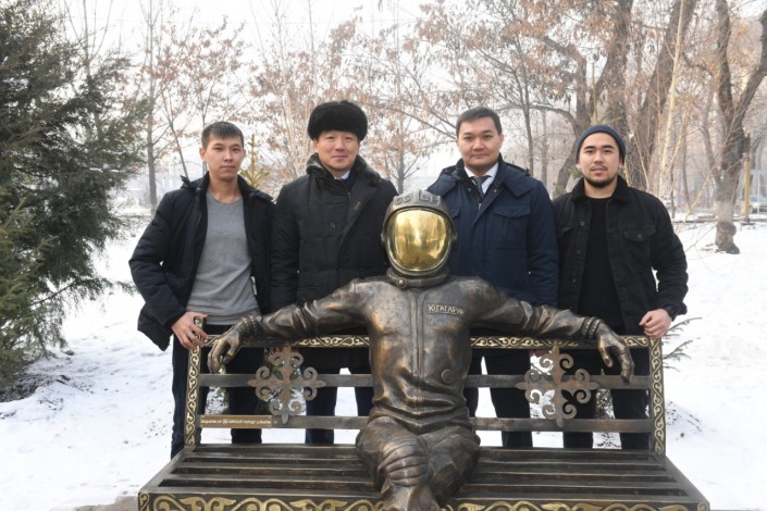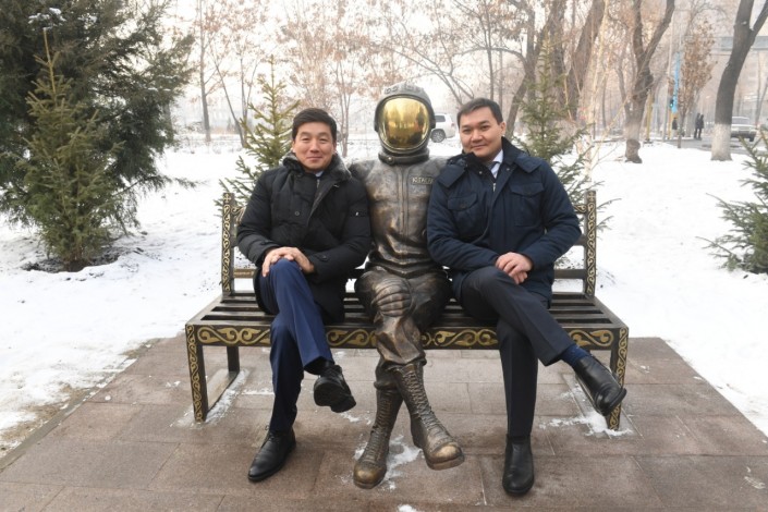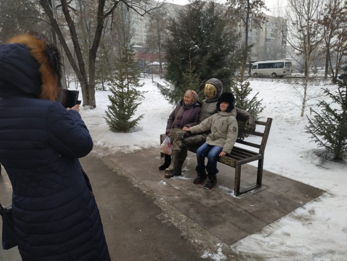 Юрий Гагарин на лавочке: в Алматы появилась новая скульптура