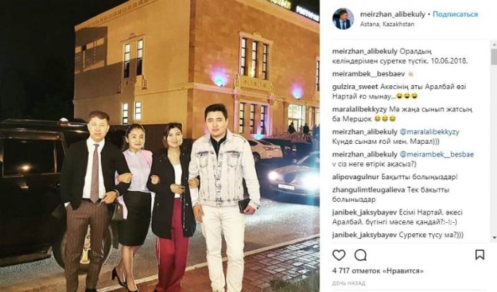 "Сфотографировались с невестами из Уральска. 10.06.2018", - подписал снимок Мейржан Алибекулы.